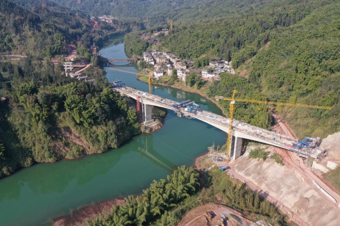 省道104雨城區(qū)坪石至回龍(洪雅界) 段改建工程望魚大橋主體成功合龍