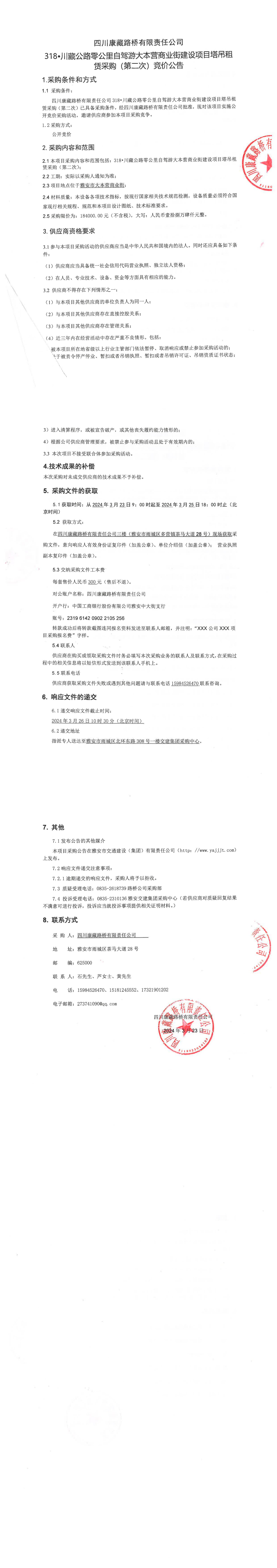 四川康藏路橋有限責任公司318•川藏公路零公里自駕游大本營商業(yè)街建設(shè)項目塔吊租賃采購(第二次)競價公告