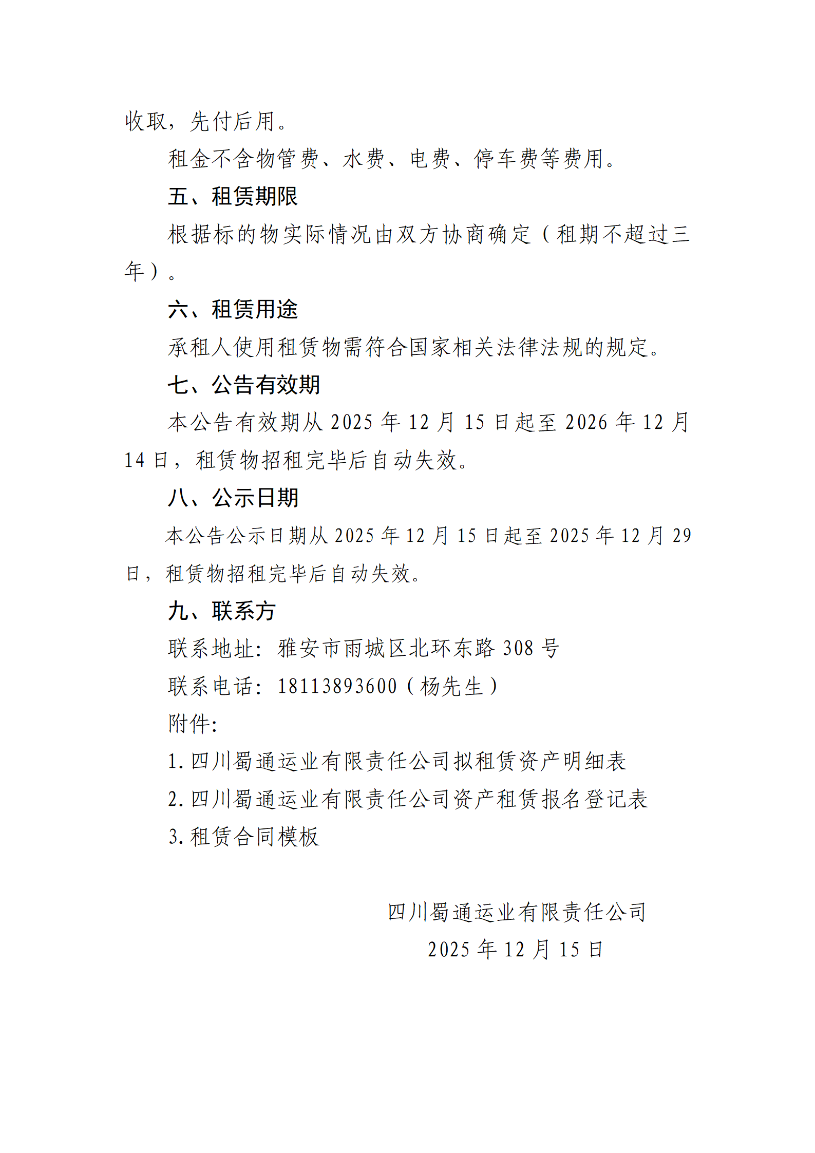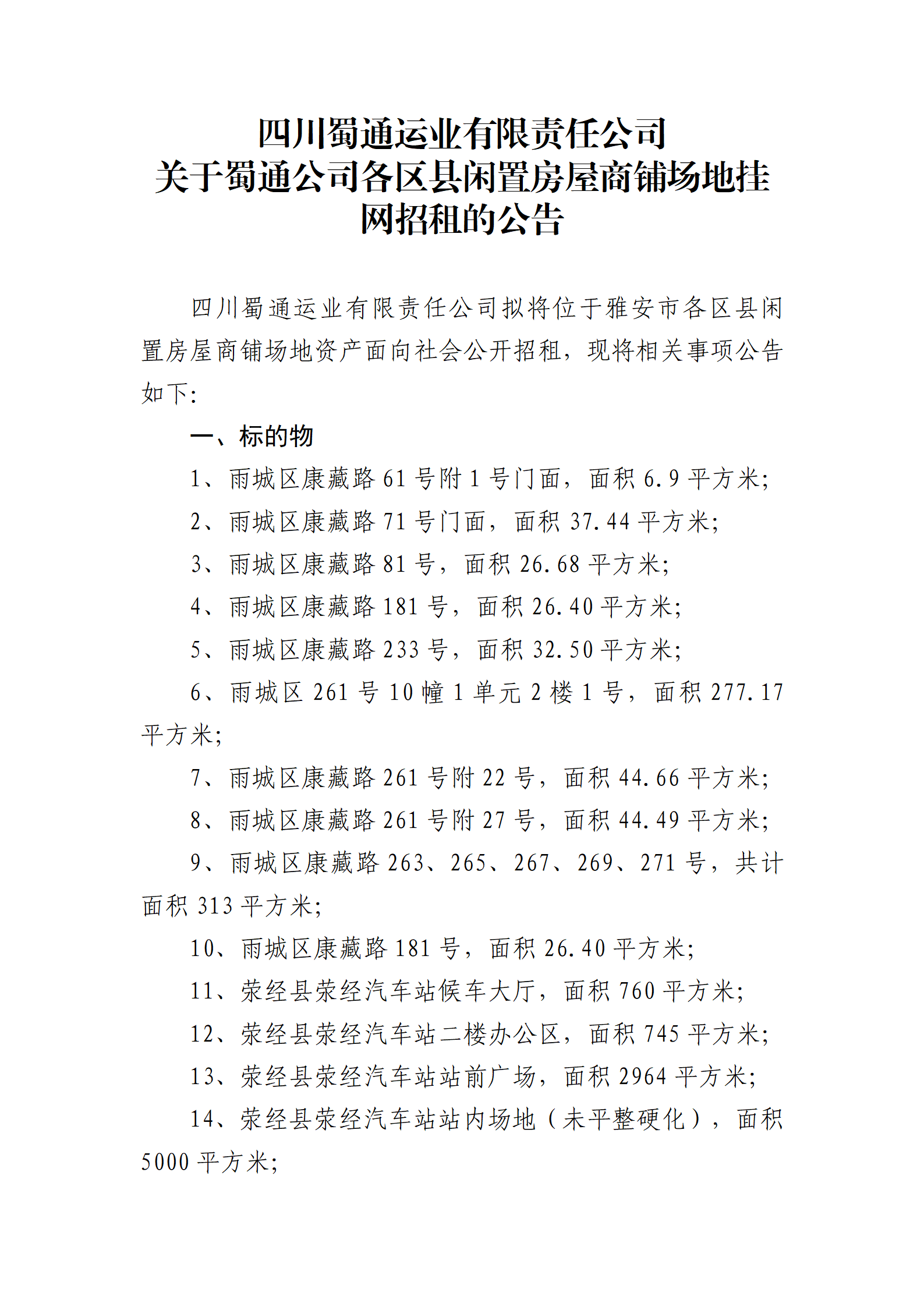 四川蜀通運業(yè)有限責任公司關(guān)于蜀通公司各區(qū)縣閑置房屋商鋪場地掛網(wǎng)招租的公告